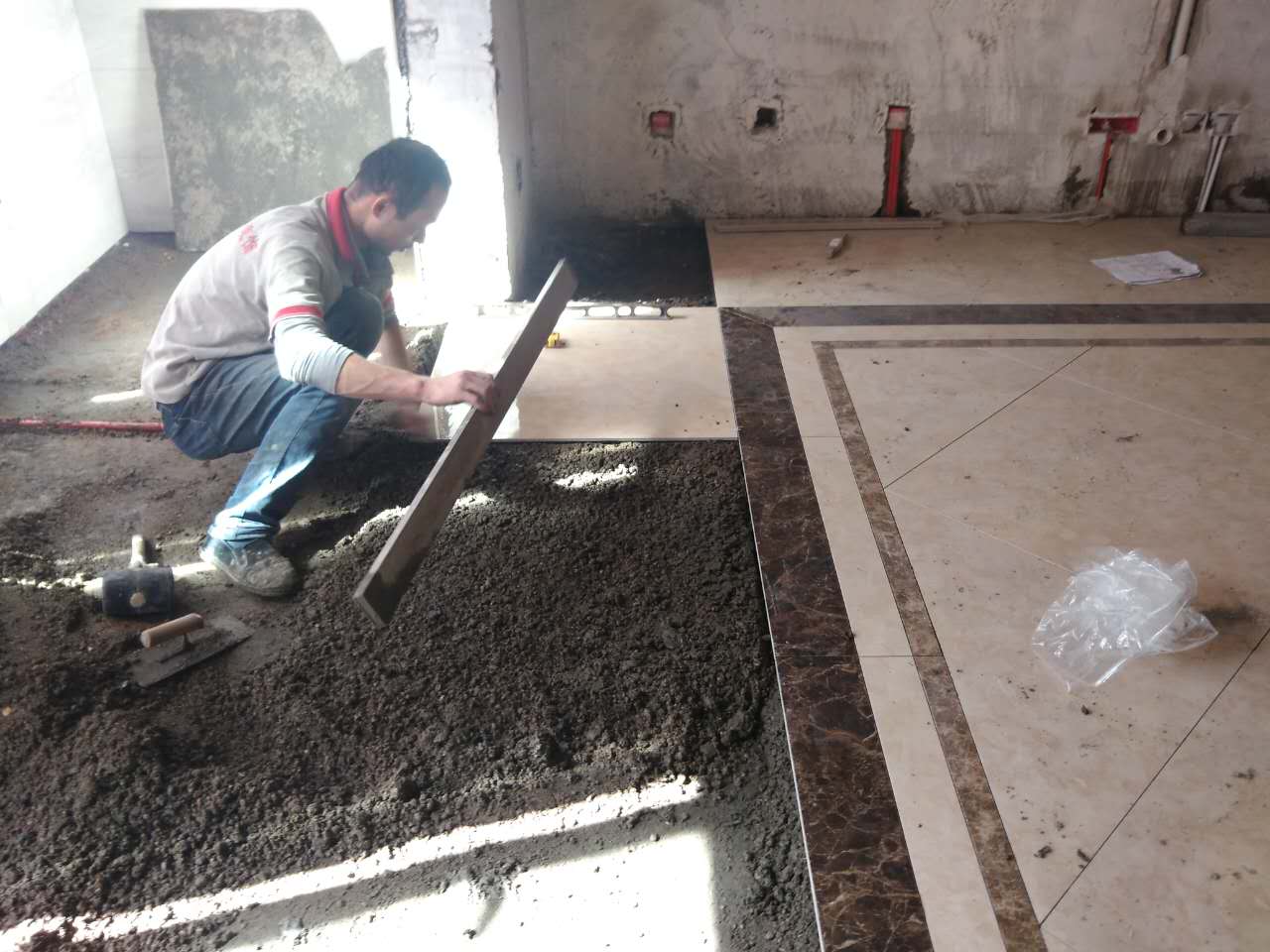 兴泰东河湾前期施工装修现场